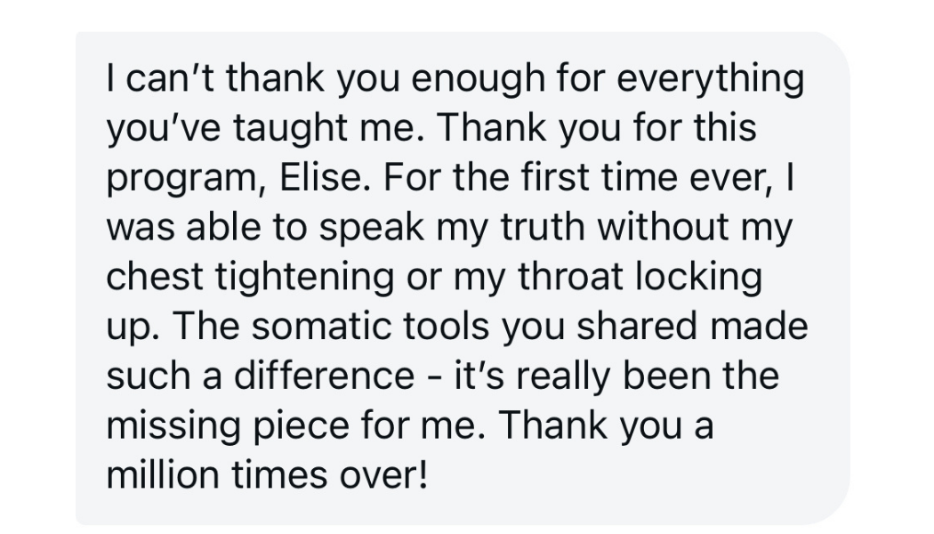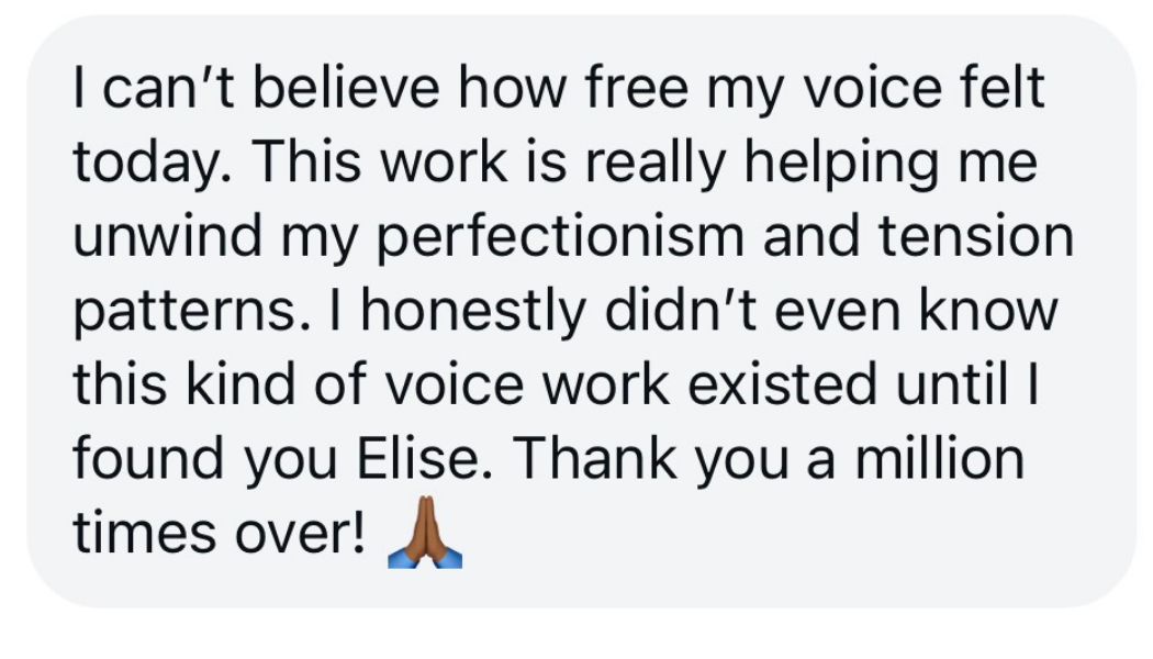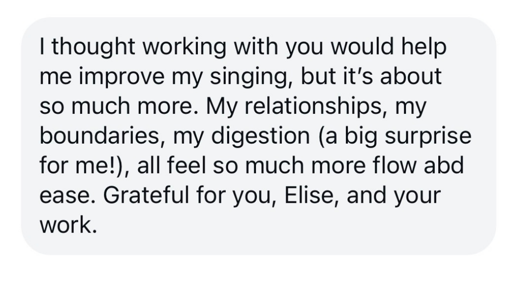 Welcome! I’m Elise Besler, a Somatic Voice Coach, Somatic Experiencing™ Practitioner, Vocalist, and Sound Healer with 23 years of experience working with voices and nervous systems.